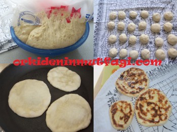 Açtığımız hamurları yağsız teflon tavada, kısık ateşte, alt üst ederek kabarta kabarta pişirelim.